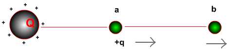 Diferencia de potencial entre dos puntos de un campo. Si tenemos una carga de prueba q+ en el punto a de la fig. ¿qué trabajo realiza para pasar a otro punto b?.